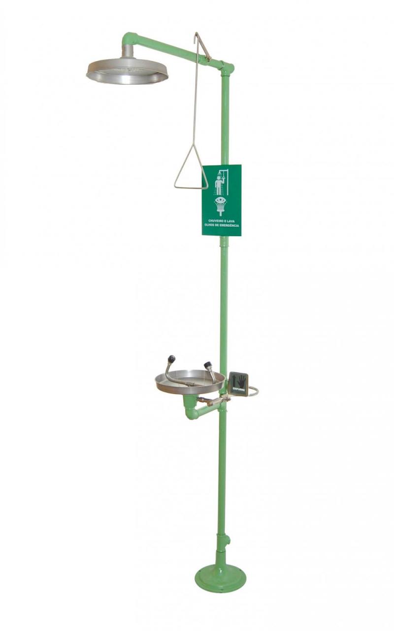 O chuveiro de segurança e lava-olhos é um equipamento empregado em laboratórios onde ocorre a manipulação de produtos químicos. Esse produto tem como função a de prevenir danos à saúde dos operadores dos laboratórios, em casos de contato com substâncias contaminantes.
